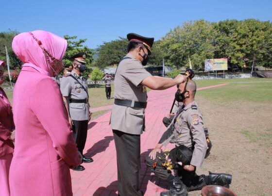Lotim sergapye–Polda NTB memimpin Upacara pembentukan Bintara Polri penerimaan gelombang 2 tahun 2022 di SPN Polda NTB, Belanting, Kecamatan Sambelia,…