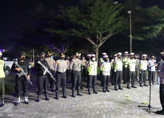 Lobar sergapye–Kopolres Lombok Barat memimpin Patroli Blue Light yang melibatkan personel gabungan satuan fungsi jajarannya bersama unsur POM TNI, Sat…