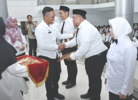 Lotim sergapye—Penjabat Bupati Lombok Timur H. Muhammad Juaini Taofik menyerahkan surat keputusan (SK) pegawai pemerintah dengan perjanjian kerja (PPPK) Tenaga Kesehatan dan Tenaga Teknis…