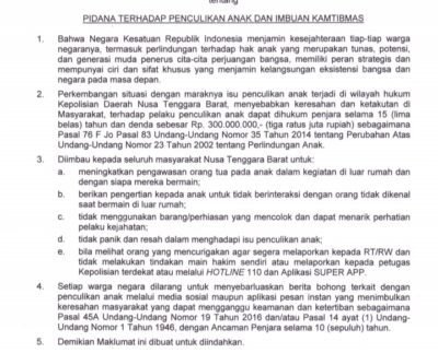 Isu Penculikan Anak Menghawatirkan, Kapolda NTB Keluarkan Maklumat