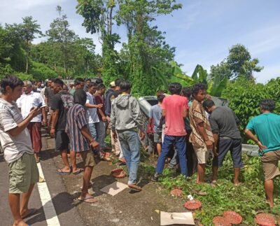 Mobil Peziarah yang Terbalik di Turunan Sajang Dievakuasi Polsek Sembalun