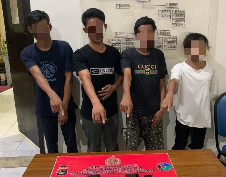 Tanpa Perlawanan, 4 Pelaku Narkoba Disergap Tim Opsnal Polres Sumbawa