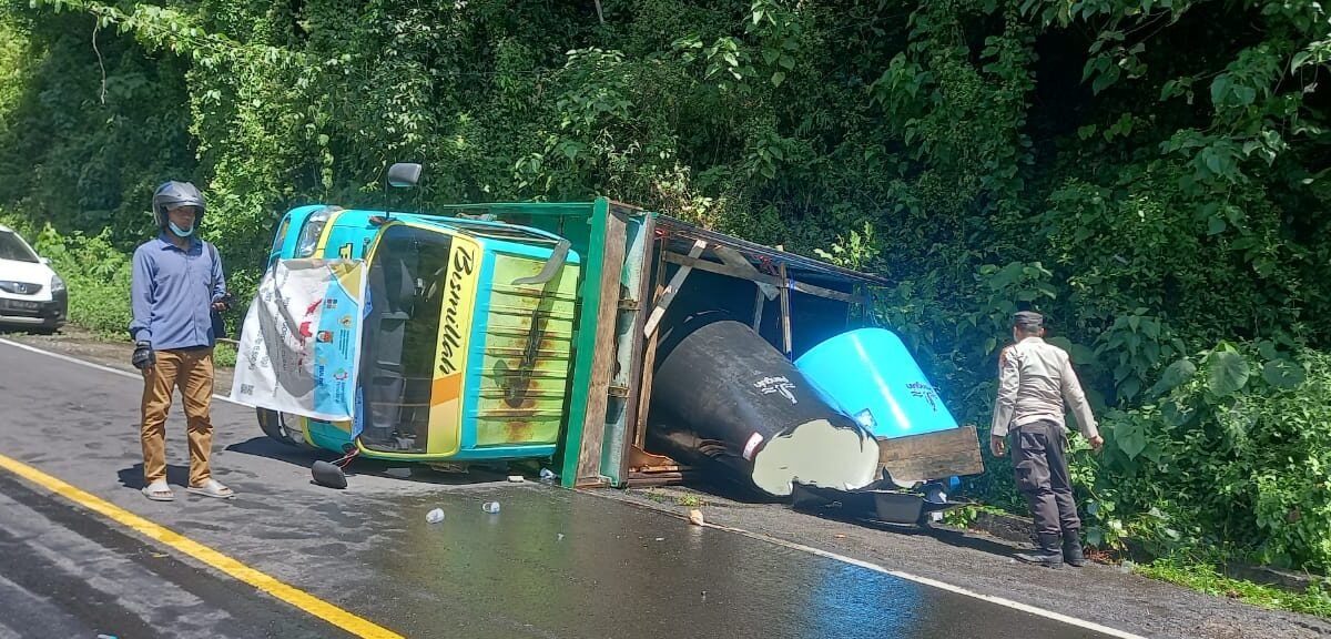 Truk Bermuatan 3000 Liter Migor Bersubsidi Terbalik di Lintasan Pusuk Sembalun