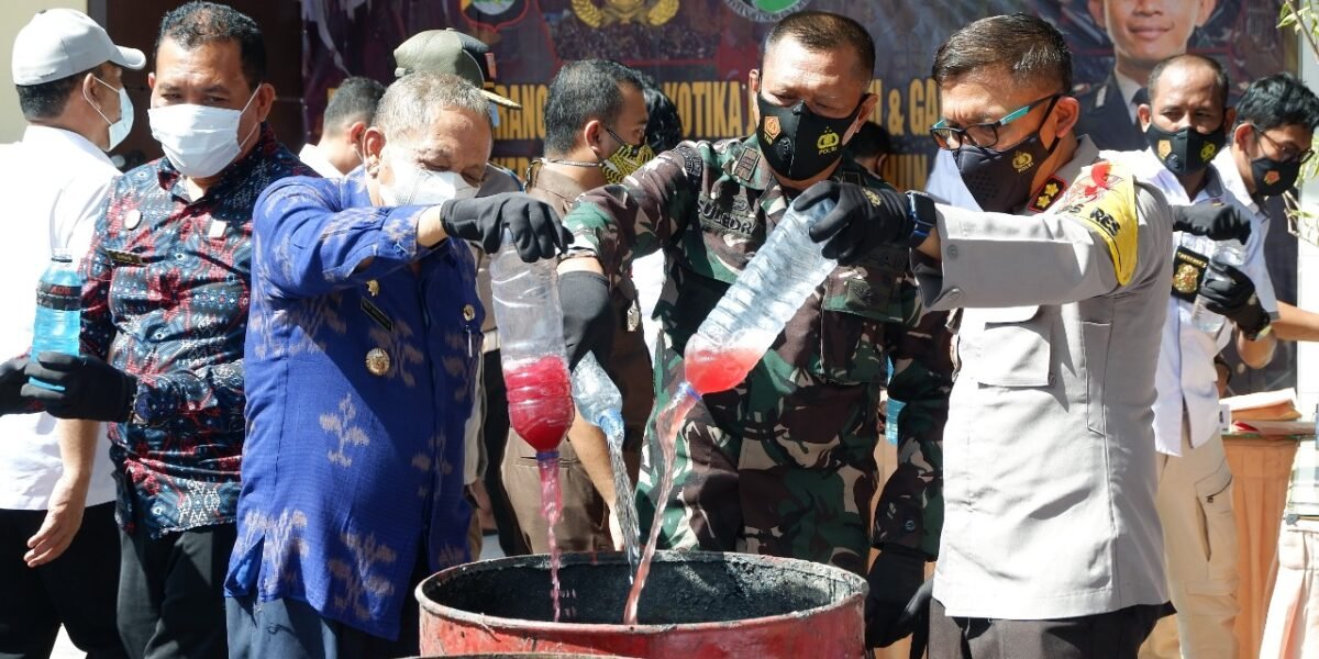 Bupati dan Muspika Sumbawa Secara Bersama Tumpahkan Miras Barang Bukti
