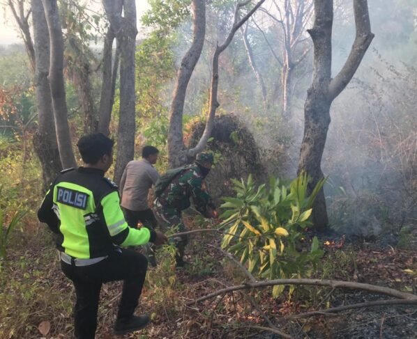 Hutan Dusun Sokong Lombok Utara Terbakar, Personel Polsek Tanjung dan Damkar Padamkan Si Jago Merah