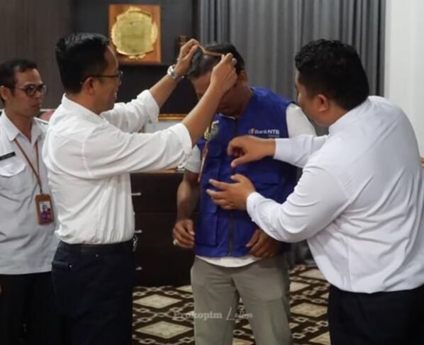 Lotim sergapye-Tim Bank NTB Syariah berkunjung ke ruang Sekda Lombok Timur, Juaini Taufik di Ruang Sekda Rabu (5/7). Kunjungan tersebut dalam rangka penyerahan rompi dan tanda pengenal sebanyak 290 untuk…
