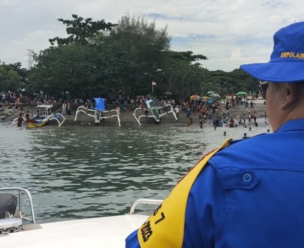 Pol Airud Polda NTB Patroli Jaga Keamanan Warga yang Merayakan Lebaran Ketupat di Pantai