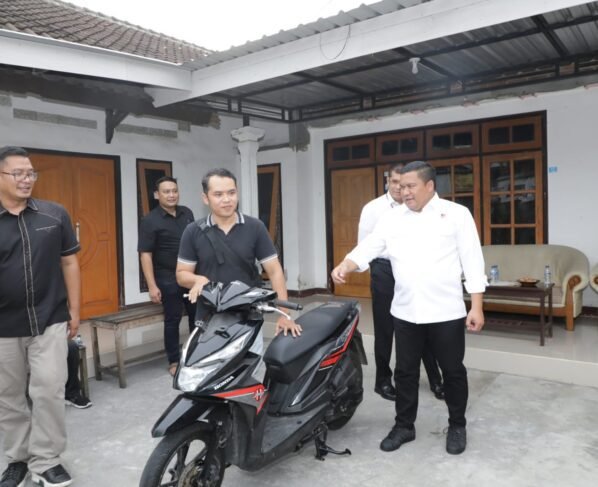 Mataram sergapy+-Lagi Satu Unit Sepeda motor Barang Bukti hasil Curian diserahkan kembali kepada pemilik oleh Direktur Reskrimum Polda NTB, Selasa 17 Januari 2023 di Kelurahan Kebun Baru, Kecamatan Ampenan, Kota…