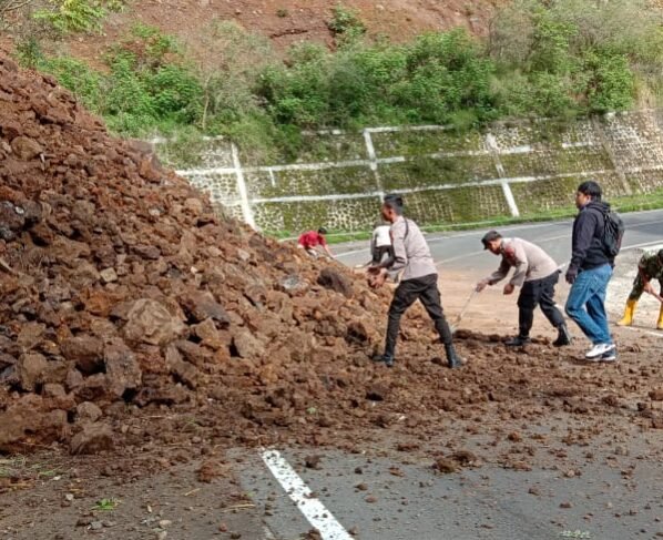 Bahu Jalan Tertutup Material, Jalur Pusuk Menuju Sembalun Kembali Longsor