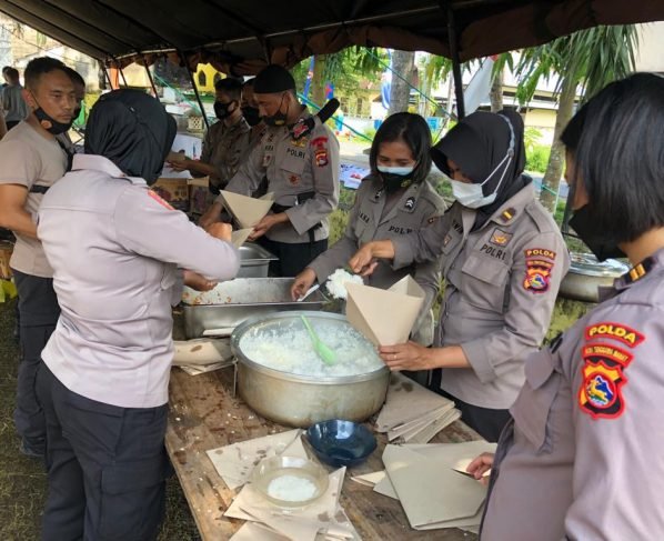 Rasa Keibuan Polwan Cantik Polda NTB Terusik, Sibuk di Dapur Umum Siapkan Ribuan Nasi Bungkus Untuk Korban Banjir