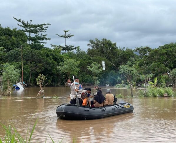 Banjir Menenggelamkan Sebagian Wilayah Lombok, Personel Polda NTB Disebar Membantu Masyarakat