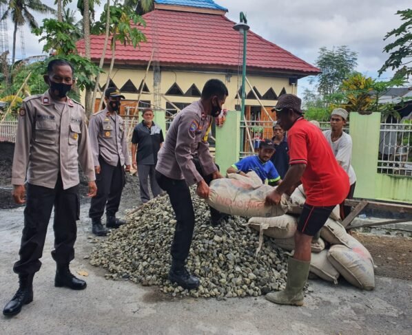 Kapolsek Dompu dan Anggota Sumbang 10 Sak Semen Untuk Pembangunan Masjid