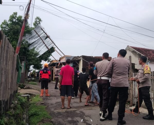 Diterbangkan Angin Kencang, Atap Rumah Warga Nyangkut di Pohon