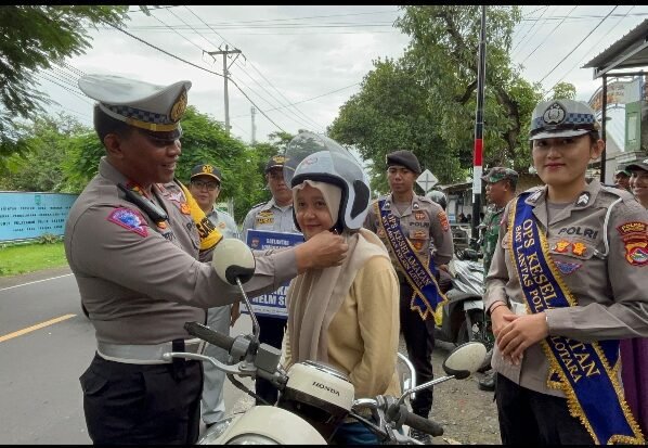 Kapolres Lombok Utara Bagikan Helm dan Jaket Gratis untuk Pengendara Motor